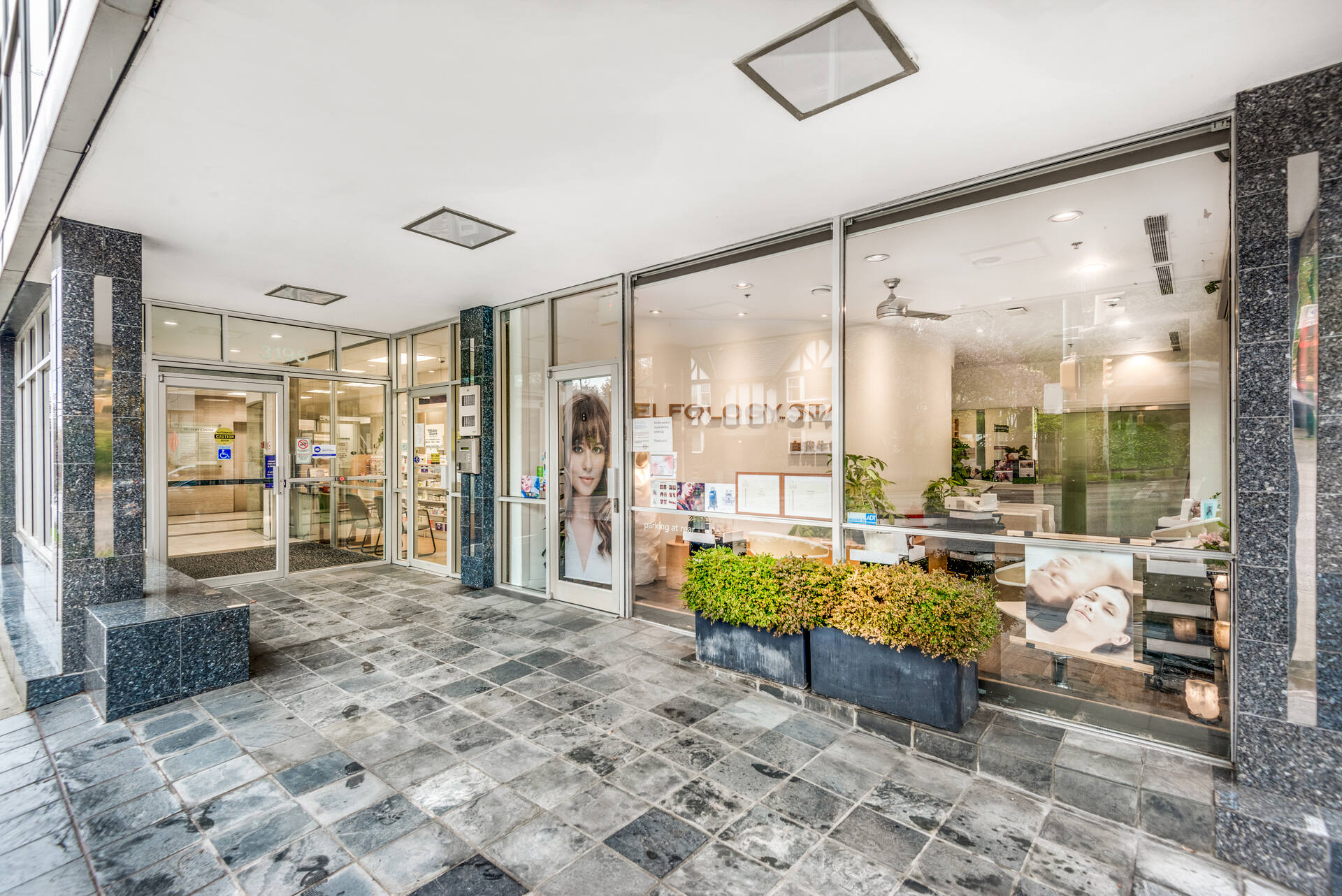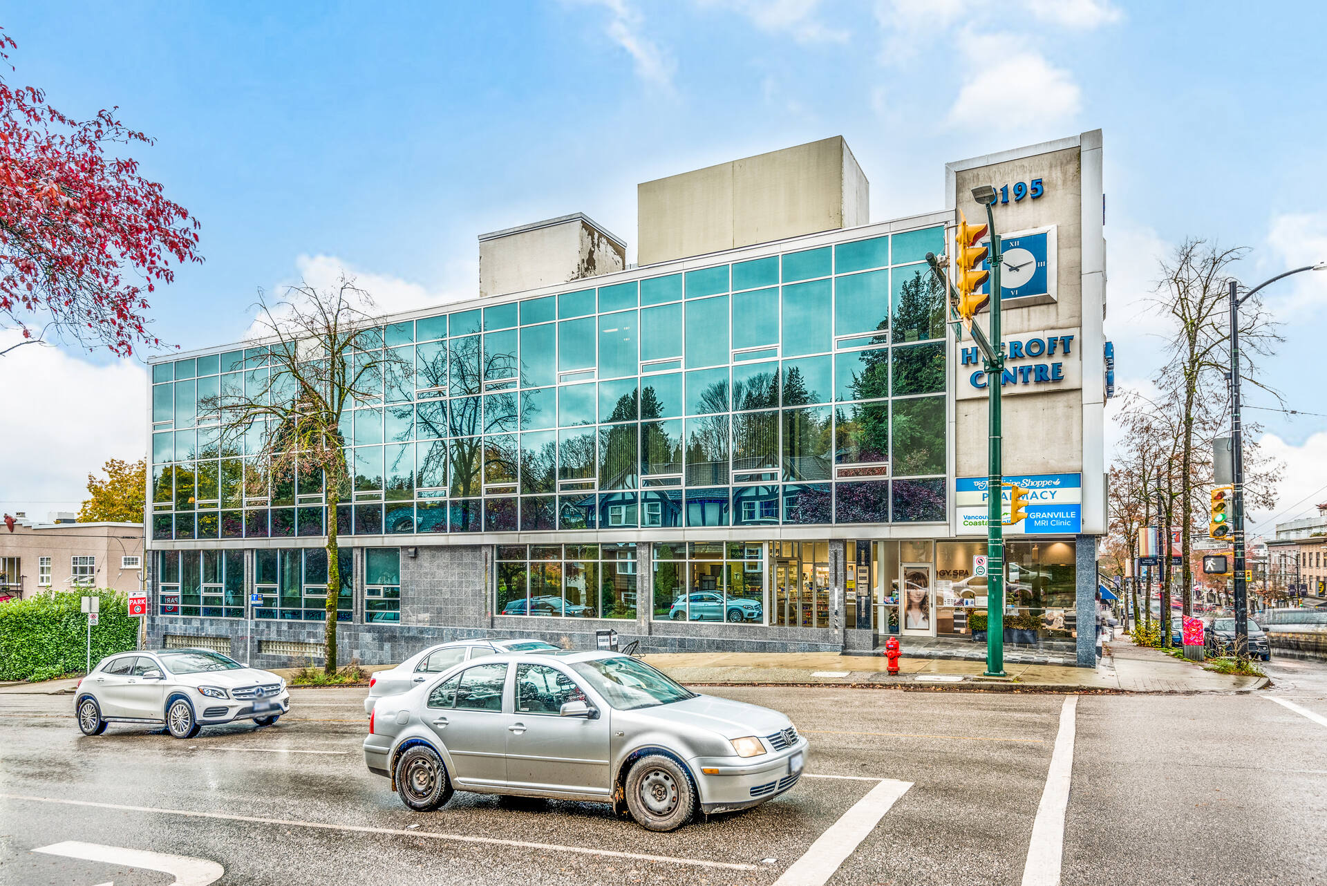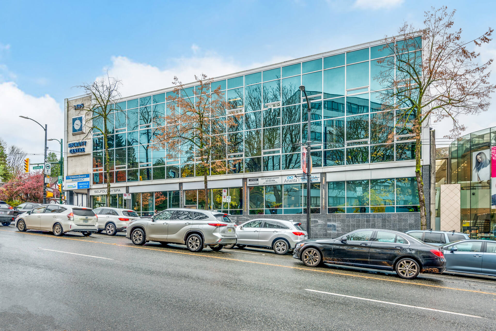 Located in the upscale neighbourhood of South Granville in Vancouver, this well-known building acts as a landmark at the entrance of this vibrant and thriving shopping area. This prime corner location offers continual exposure from daily car and pedestrian traffic as well as proximity to retail, restaurants and other amenities. Strategically located between three hospitals, this building is themed for high-end medical and health-related uses, providing a one-stop destination for clients.